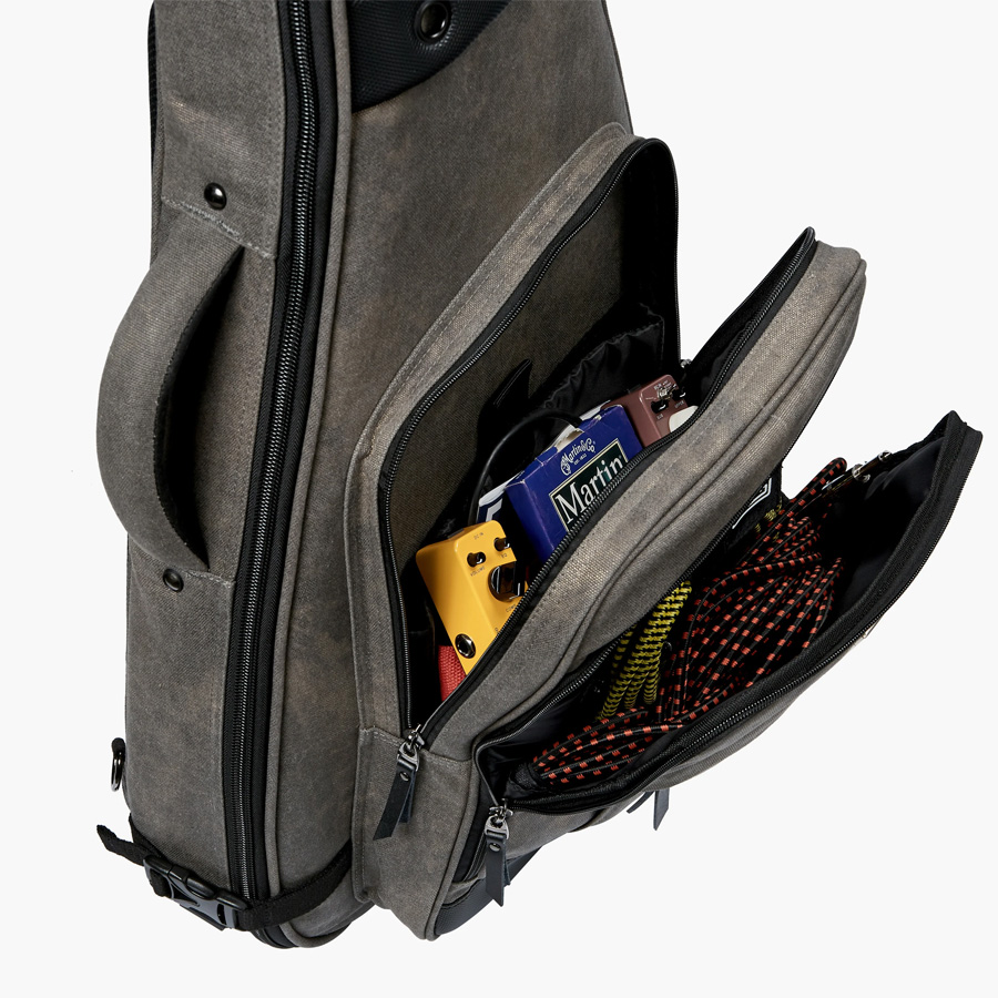 La cara exterior está hecha de Guil Canvas, simil piel muy duradero, mientras que la interior está cubierta con una gruesa capa de felpa suave y tiene un acabado impermeable. En la parte inferior encontrarás un sólido refuerzo de PVC que protege no sólo el instrumento, sino también el propio estuche del desgaste.